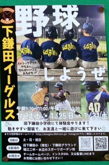 ⚾体験会のお知らせ⚾1/24.1/25.1/31